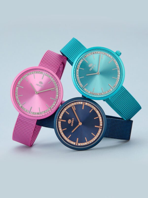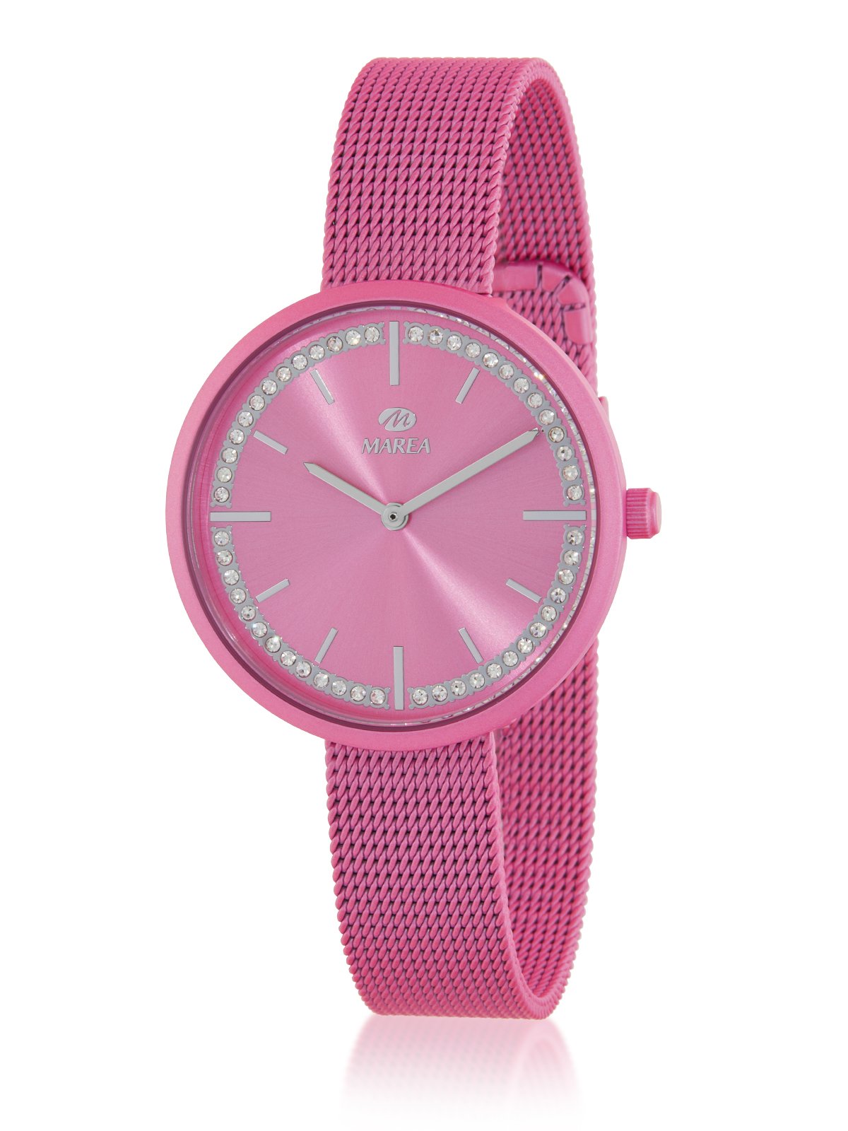 Esfera: Color fucsia con bisel de pedrería.